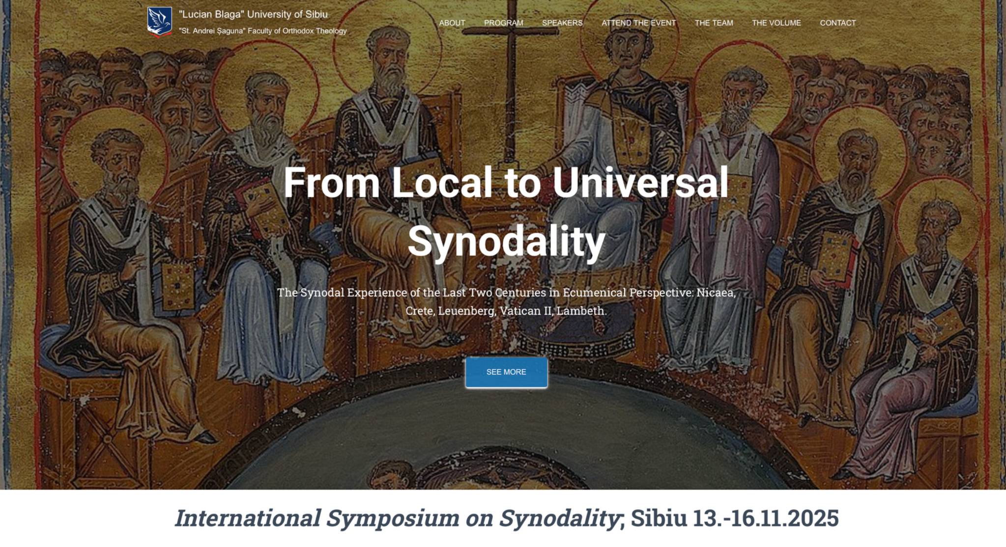 În perioada 15–17 noiembrie 2025, la Facultatea de Teologie „Sfântul Ierarh Andrei Șaguna” din Sibiu, se desfășoară Simpozionul internațional despre Sinodalitate în perspectivă ecumenică – From Local to Universal Synodality, dedicat comemorării a 1700 de ani de la Primul Sinod Ecumenic de la Niceea (325–2025).